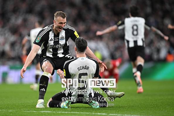뉴캐슬 유나이티드는 17일(한국시간) 영국 런던 웸블리 스타디움에서 열린 2024-25시즌 잉글랜드 리그컵 결승전에서 프리미어리그 1위 팀 리버풀을 2-1로 꺾었다. 댄 번과 알렉산데르 이사크의 연속골이 터지며 승리를 확정했다.