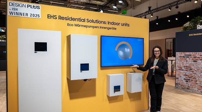 우선 이번에 전시하는 '슬림 핏 클라이밋허브'는 200L 전용 물탱크가 탑재된 가정용 히트펌프 에코히팅시스템(EHS) 제품이다. 해당 제품은 7형 터치스크린 기반 '인공지능(AI) 홈'을 탑재해 편의성을 높였고, 600㎜ 깊이의 슬림핏 디자인을 가져 집 안 빌트인 가구와도 잘 어울릴 수 있게 했다. 'EHS 모노 R290'도 고효율 냉난방 시스템인 히트펌프 EHS 제품으로, 자연냉매인 R290을 적용한 것이 특징이다. 강력한 성능으로 난방을 위한 최대 75도의 고온수를 공급할 수 있다.