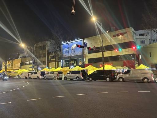 외국인 관광객이 많이 찾는 동대문역사문화공원역 주위는 날이 어두워지자 노란색 천막이 우후죽순 들어섰다.