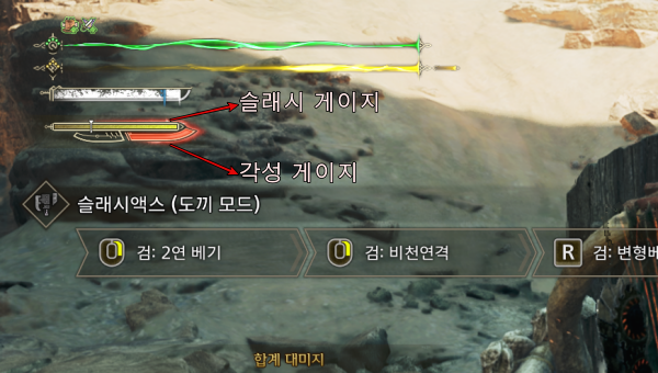 요약하면 도끼로 슬래시 게이지를 쌓고 검 공격으로 슬래시 게이지를 소모하면서 각성 게이지를 쌓는 메커니즘이다. 다만, 무리하게 검 공격을 펼치다가 슬래시 게이지가 바닥나지 않도록 주의해야 한다.