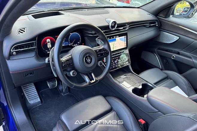 실내는 단번에 고급 차임을 알 수 있다. 그만큼 화려하고 품질이 좋다는 뜻이다. 질 좋은 가죽은 물론 스티치와 탄소섬유 패널의 쓰임도 상당하다. 조립 품질도 개선돼 흠 잡을 곳이 없다. 강화된 디지털 요소는 새 마세라티의 핵심 포인트다. 크게 화면은 세 개로 나뉜다.