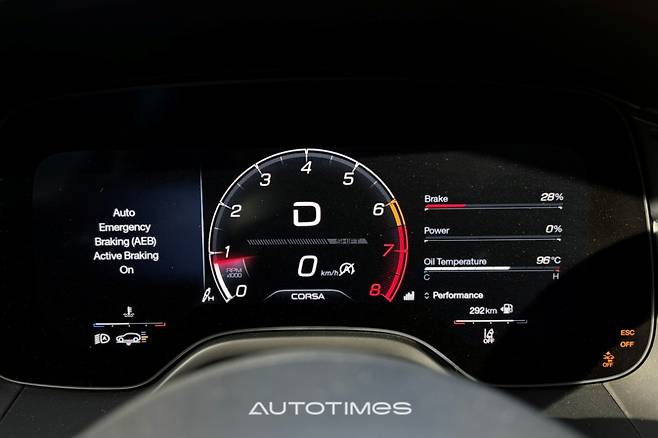 계기판과 센터페시아 모니터, 공조 장치 및 각종 기능을 한 번에 조작 할 수 있는 별도의 패널이 아래쪽에 커브드 형태로 위치한다. 전부다 화려한 그래픽을 바탕으로 일목요연하게 정리돼 있어 보는 맛이 있다. 또 브랜드 정체성과 같은 중앙 시계 역시 디지털로 바뀌었다. 단순히 시간을 알려주는 것을 넘어 G포스 미터나 크로노 그래프 등 여러 정보를 제공한다.