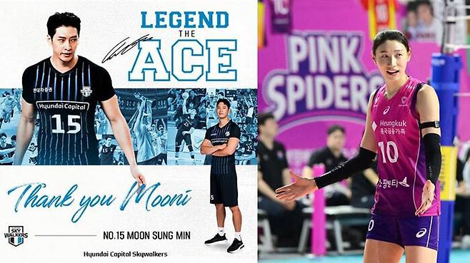 ▲ 올 시즌을 끝으로 은퇴하는 '배구 전설' 문성민(왼쪽)과 김연경