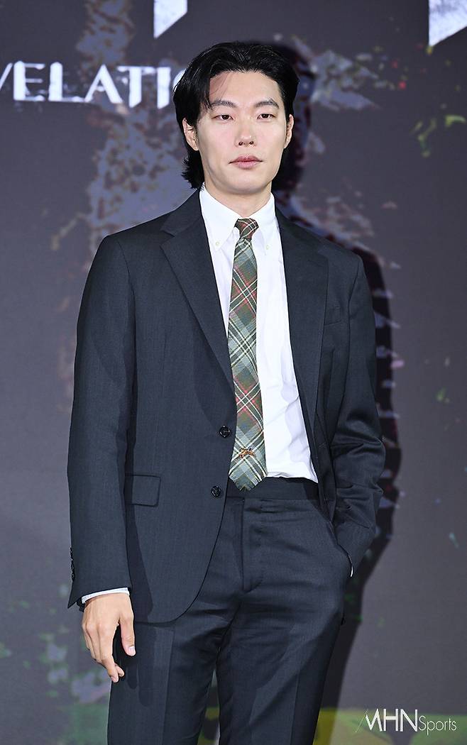 배우 류준열이 18일 오전 서울 마포구 호텔 나루 서울 엠갤러리에서 진행된 영화 '계시록' 제작보고회에 참석해 포토타임을 갖고 있다.