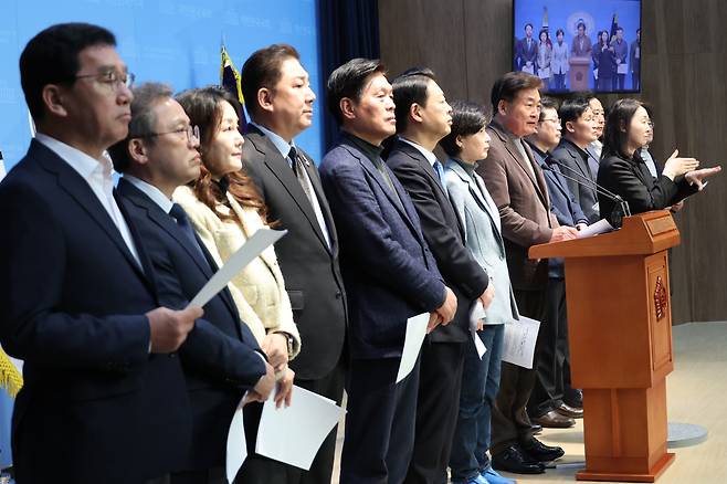 박정 의원은 이날 기자회견의 취지를 설명하며 "파면이 되더라도 그동안의 실정은 계속 밝혀야 한다"면서" 헌재 재판관께도 여러 실정과 국민 불안, 경제 상황에 (윤 대통령이) 충분한 책임이 있으니 결정하는 데 참고하시라는 의미도 있다"고 전했다.