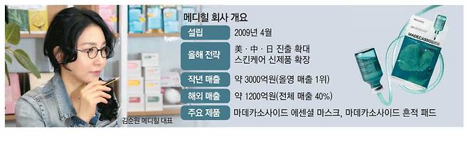 일찌감치 진출했던 일본에서는 그간의 성과가 기대에 못 미쳐 최근 유통사를 바꾸고 기존 마스크팩 중심이던 영업 전략을 전면 수정했다. 김 대표는 "이전에는 유통사에 일임했지만 이제는 좀 더 적극적으로 개입해 한국에서의 성공 방정식을 심을 생각"이라고 설명했다. 또 한때 메디힐 매출에서 75%를 차지할 정도로 비중이 컸던 중국 시장은 침체기를 지나 다시 성장세를 회복한 덕에 기대감이 커지고 있다고 전했다.