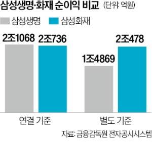 연결 순이익을 놓고 보면 삼성증권과 삼성카드 등을 거느린 삼성생명(2조1068억원)이 삼성화재(2조736억원)를 웃돈다.