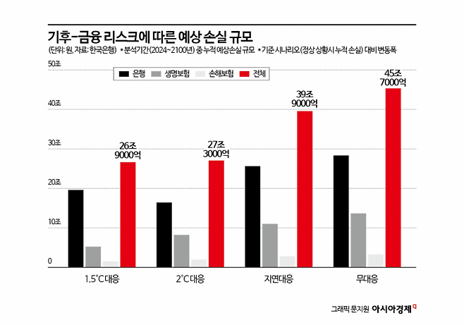 "기후 리스크에 아무런 대응을 하지 않으면 금융기관 손실 규모는 45조7000억원에 달할 것."