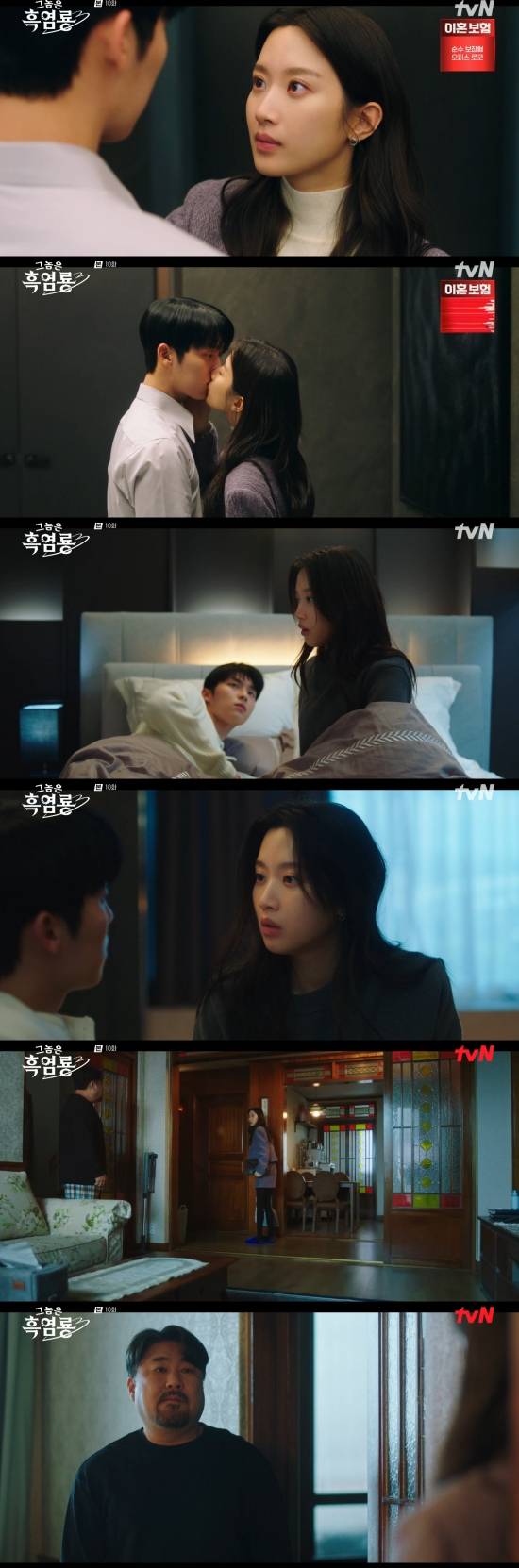 18일 방송된 tvN 월화드라마 '그놈은 흑염룡' 10회에서는 백수정(문가영 분)이 반주연(최현욱)의 집에서 하룻밤을 보낸 모습이 그려졌다.