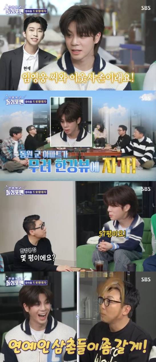 이상민은 "정동원 씨가 임영웅 씨와 이웃 사촌이다. 한강뷰 아파트에 중요한건 자가"라면서 정동원의 재력을 다시 한 번 언급했다. 김준호는 "이제 19살인데 한강뷰 자가라니"라면서 놀랐다.