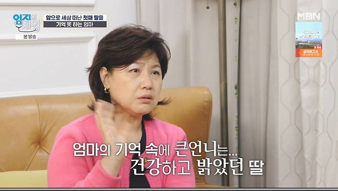 이어 "사실 첫째 언니가 암으로 세상을 떠났다. 암 선고를 받고 6개월 만에 급속 악화됐다"며 "그런데 어머니는 모른다. 아직 살아있는 줄 아신다. 딸을 못 알아보더라. 엄마에게는 아픈 딸에 대한 기억이 없는 것"이라며 눈물을 훔쳤다.