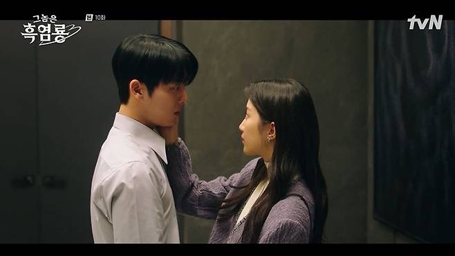 18일 방송된 tvN 월화드라마 '그놈은 흑염룡'에는 서로를 생각하는 백수정(문가영 분), 반주연(최현욱)의 모습이 그려졌다.
