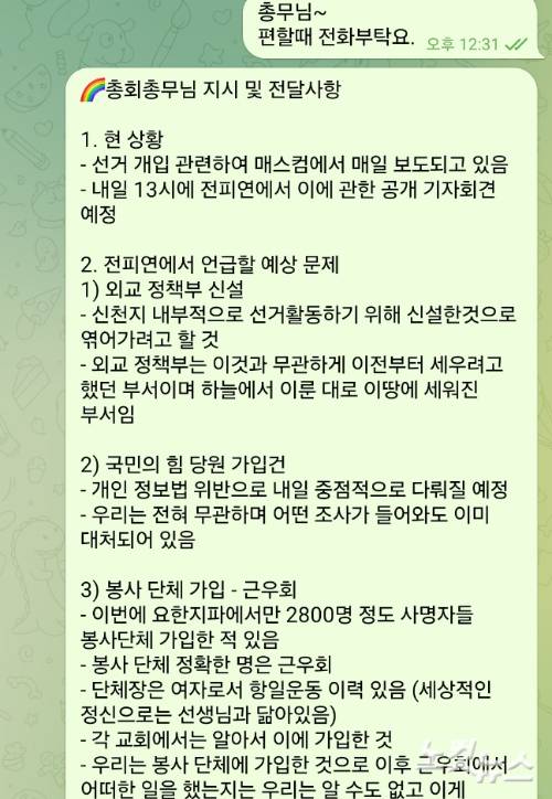 신천지 내부에선 이미 조직적으로 이뤄진 당원 가입 지시 내용과 그 위법성을 인지하고 있었음을 보여줍니다.