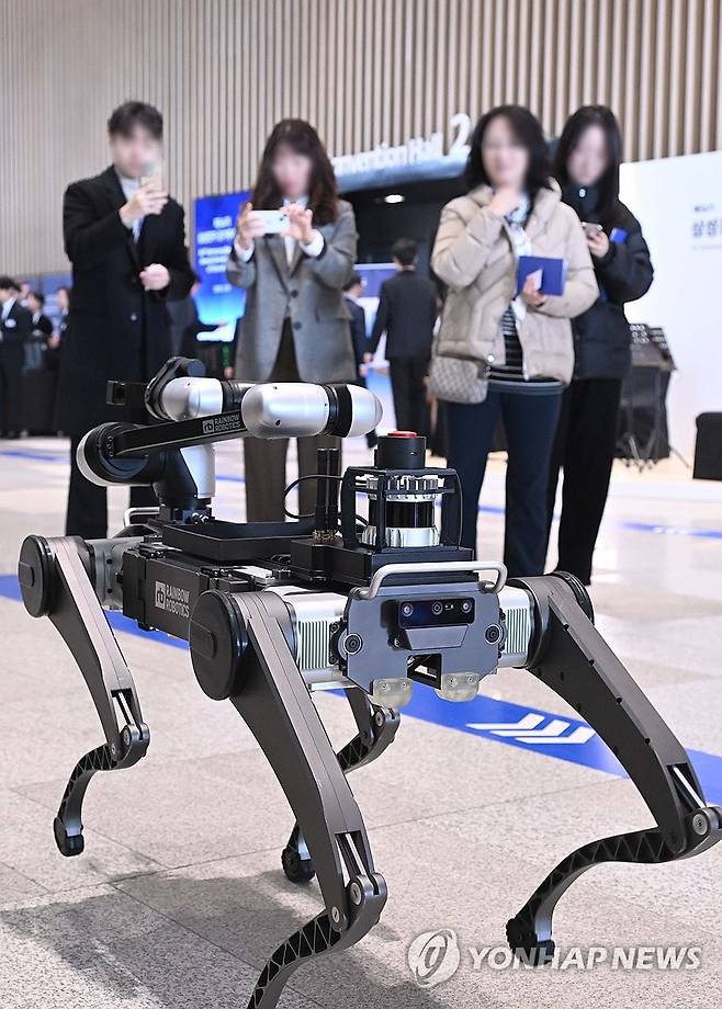 (서울=연합뉴스) 홍기원 기자 = 19일 경기도 수원시 영통구 수원컨벤션센터에서 열린 제56기 삼성전자 정기주주총회에서 주주들이 레인보우로보틱스 로봇 시연을 보고 있다. 2025.3.19 [공동취재]