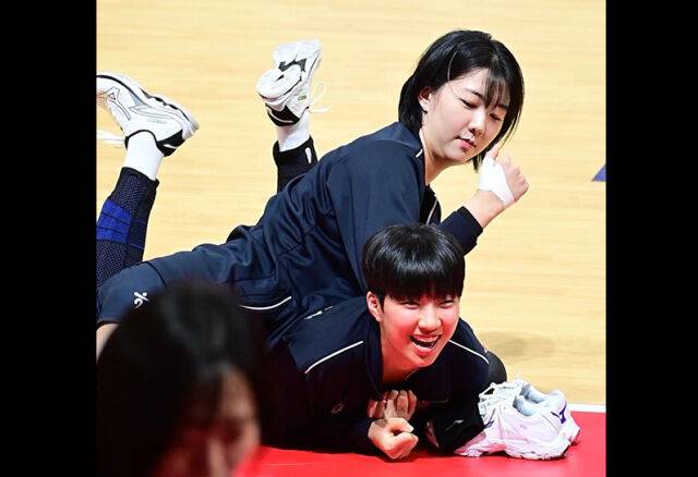 평상시에도 장난기가 많은 강소휘는 김세인을 덮치며 가지고 있던 볼로 김세인의 몸을 찌르는 장난을 쳤다. 그리고는 어깨 마사지를 해줬고, 김세인도 강소휘의 무릎 공략을 하면서 맞대응을 하며 즐거운 시간을 보냈다.