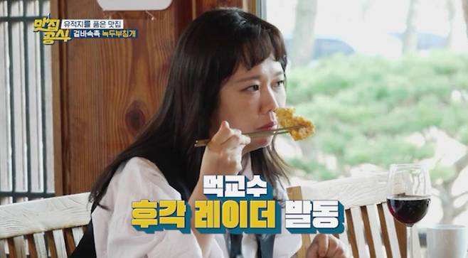 먹교수 홍현희의 활약은 통오리밀쌈 전문점에서도 이어졌다. 음식을 먹기 전, 후각 레이더를 발동! 냄새부터 맡는 고급(?) 먹스킬을 선보이며 쏘영, 조수연에게 자신만의 먹철학을 전수했다. 특히 통오리밀쌈을 먹을 때에는 껍질 먹방의 대가답게 통 오리의 바삭한 껍질을 음미해, 깊이 있는 맛 표현과 다양한 먹조합으로 맛집 연구에 뜨거운 열정을 보여줬다.
