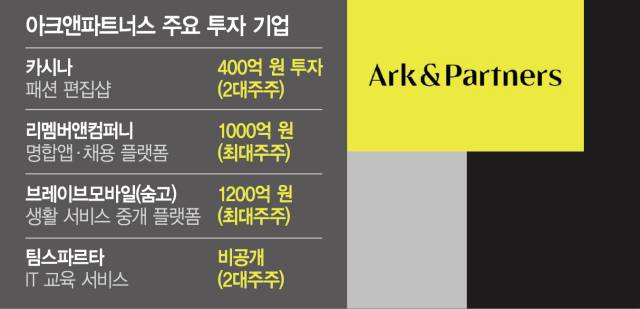 아크앤파트너스는 2020년 설립 이후 패션 편집샵 '카시나', 명합앱 '리멤버앤컴퍼니', 생활 서비스 중개 플랫폼 '숨고'에 투자해 최대주주 혹은 2대주주 지위를 확보했다. 누적 투자금만 약 3000억 원에 육박하는 것으로 추산된다. 대부분 투자 건마다 출자자들을 모아 결성한 프로젝트펀드를 통해 투자해 왔다. 또 최근에는 그동안의 투자 성과를 인정받아 약 1000억 원 규모 블라인드펀드(투자 대상을 정하지 않고 결성하는 펀드) 결성에 성공하기도 했다.