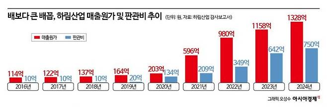 하림산업의 적자 행진은 매출 부진 속에서 매출원가와 판매관리비가 급증한 데 따른 것이다.