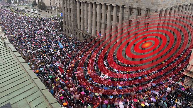 그런데 집회가 한창이던 그 순간, 귀가 찢어지는 듯한 날카로운 소리가 들리면서 시위대는 혼비백산해 흩어졌습니다.