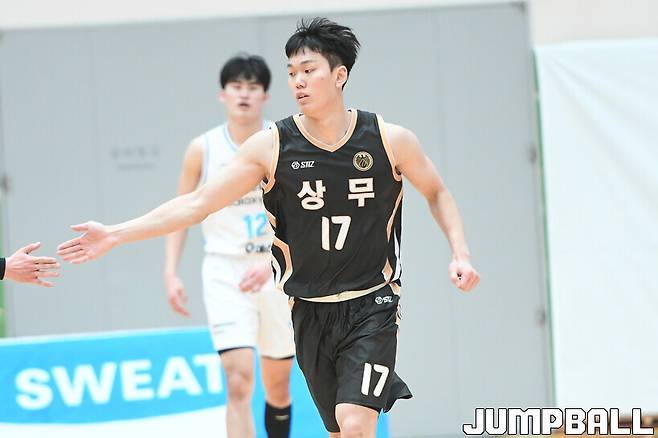 2쿼터 상무가 계속해서 앞섰다. 김준환이 3점슛 2개를 적중시켰고, 김태완 역시 존재감을 뽐냈다. 양홍석과 신동혁은 외곽에서 지원 사격했다. 전반전이 종료됐을 때 점수는 50-35, 여전히 상무가 크게 앞섰다.