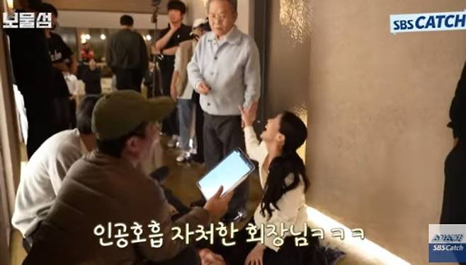 영상에선 SBS 금토드라마 ‘보물섬’ 촬영 현장 비하인드가 담겼다. 이날 서동주(박형식 분)가 시나몬이 들어간 타래과를 먹고 쓰러진 장면 촬영 리허설 현장이 공개됐다. 여은남(홍화연 분)이 서동주에게 인공호흡을 하는 상황에서 차강천 회장 역의 우현은 “염희철이 보고 있으니까 내가 하려고”라고 인공호흡을 자처하며 폭소를 자아냈다.