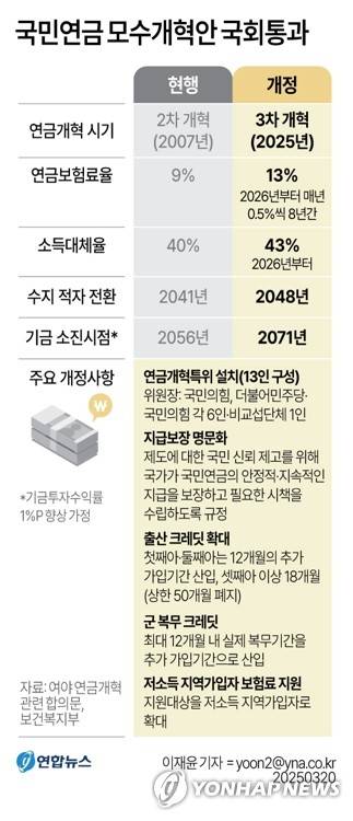(서울=연합뉴스) 이재윤 김토일 기자 = 20일 '더 내고 더 받는' 국민연금 개혁안이 20일 국회 문턱을 넘었다.