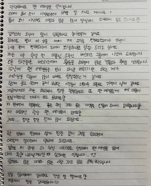 긴글 읽어주셔서 감사하고 건강 잘 챙기세요! 지금까지 정말 감사했습니다!