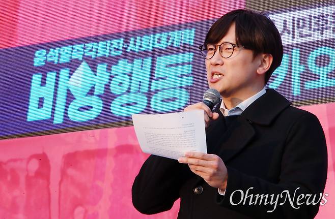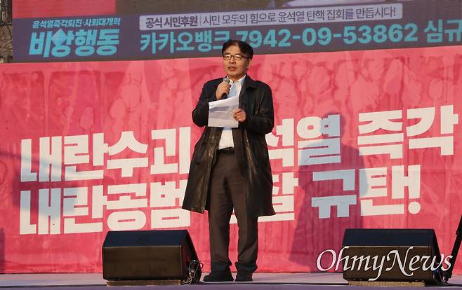| ▲ 민변, 윤석열 즉각 파면 촉구 민주사회를 위한 변호사모임(민변) 주최로 20일 오후 서울 종로구 광화문 동십자각 무대에서 열린 "윤석열 즉각 파면 촉구 변호사대회-주권자 시민의 최후변론: 피청구인 윤석열을 파면한다"에서 임재성 변호사가 최후변론을 하고 있다. |