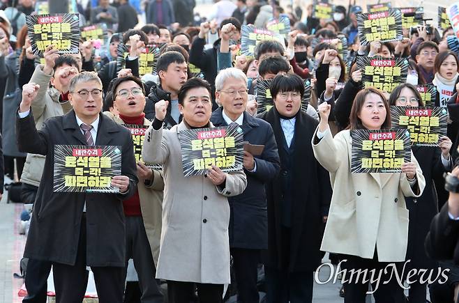 거리로 나선 변호사들 "헌법재판소 선고 지연, 그 자체로 부정의"