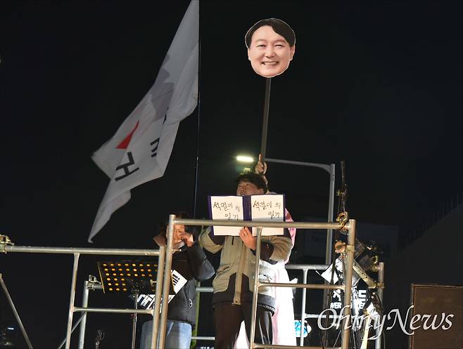 시민발언에 나선 최선민씨는 2008년 부모님을 따라 박근혜 탄핵 촛불집회에 참여했던 기억을 상기한 뒤 "그때 저는 '간절히 바라는 일이 있다면 함께 모여 초를 켜면 되는구나' 하는 것을 깨달았다. 그래서 저는 나라가 위기라고 생각해 자연스럽게 이 광장에 나오게 됐다"고 말했다.