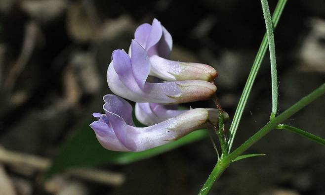 바람이 아직 차가운 3월이 지나고 완연한 봄이 오면 하나둘 꽃을 피우는 식물들이 늘어나기 시작한다. 이 시기 깊은 숲 속 나래완두의 새싹도 작은 몸을 세상에 내보이기 시작한다. 이 식물은 지리적으로 한정된 지역에서만 자라는 우리나라 고유종 중 하나로 남부지방의 계곡 등지나 햇빛이 약하게 드는 습한 지역을 지나다 보면 보랏빛 꽃이 수줍게 피어있는 모습을 볼 수 있다.