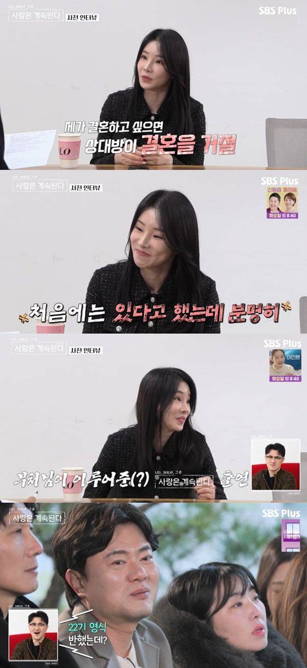 국화를 향한 질문이 쏟아졌다. 22기 영수는 "좋아하는 남자가 아이가 있는 돌싱이라면"이라고 묻자 국화는 "갔다 온 사람이 평범할 수 있다싶다. 저는 돌싱도 괜찮고, 아이까지는 생각해 보지 않았다. 그런데 경험치상 좋은 엄마가 될 수 있을 거란 생각도 해봤다"고 밝혔다.