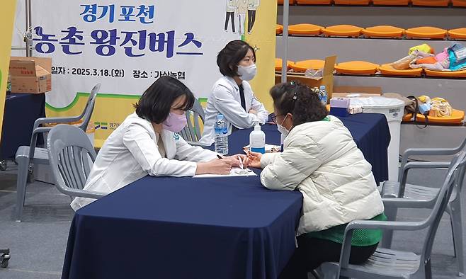 이날 포천에 자리 잡은 왕진버스 현장에는 △양·한방 진료 △치과 △구강관리 △근골격계 질환 △검안 등 다양한 분야에서 진료가 이뤄졌다. 포천우리병원, 보건의료통합봉사회, 열린의사회 등에서 의료진과 자원봉사자 118명이 참여했다.
