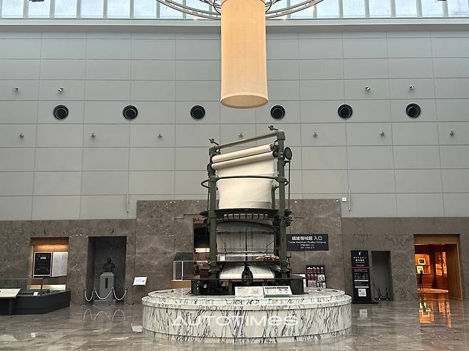 로비에 들어오면 거대한 원형 방직기가 관람객을 맞는다. 1924년 토요타가 제작한 방직기로 원운동을 통해 넓은 천 조각을 조용히 직조할 수 있는 기계라는 점에서 주목 받았다. 당시 세계 19개국에서 특허를 받았을 정도로 혁신적인 기술이었다.