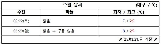3월 3주 차 대구·경북 주말 '날씨 체크'