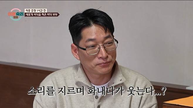 계속해서 '바닥 부부'의 언쟁이 높아지는 한편, 소리 지르던 남편이 갑자기 아내를 향해 의미심장한 미소를 짓고 빤히 쳐다봐 소름을 유발했다.