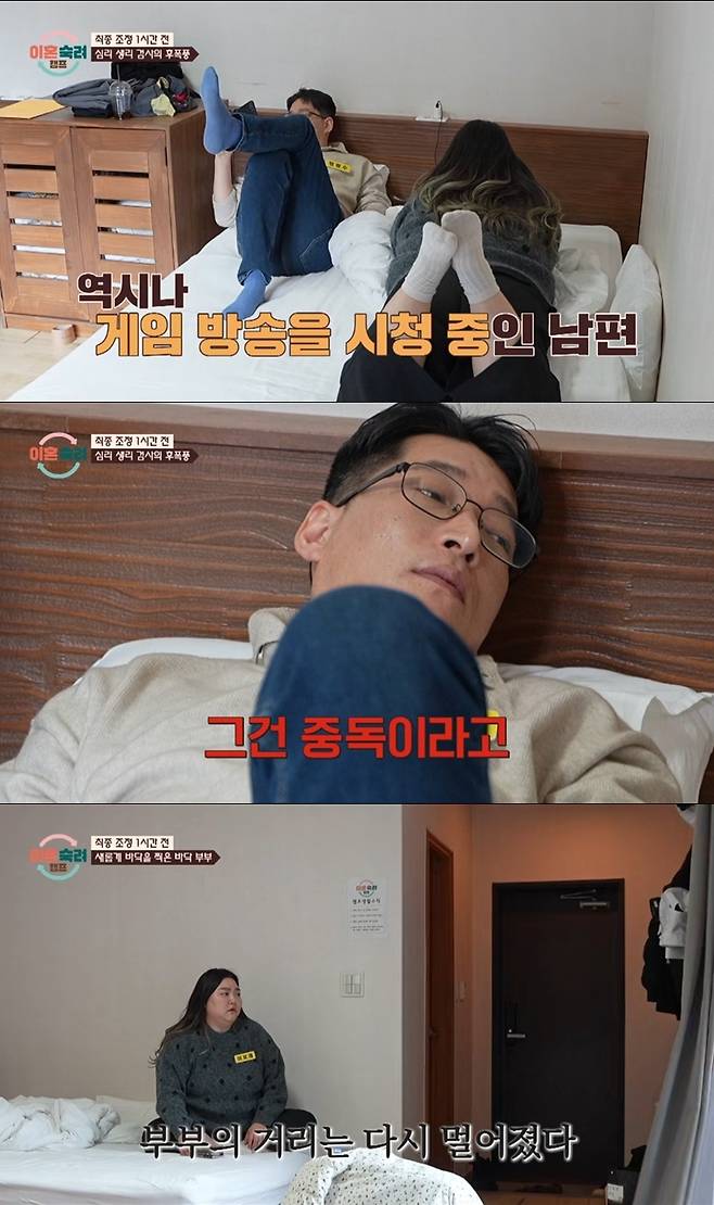 남편은 최종 조정을 앞두고도 누워서 게임 방송을 시청했다. 아내는 "생각해 보면 우리가 서로한테 궁금한 거 없이 지냈지 않냐. 조금씩 마음을 열어 간다고 생각한다"며 대화를 시도했으나 남편은 "건들지 마라"며 회피했다.
