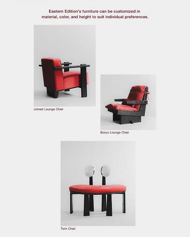 전통 드라마에서 한 번쯤 본 적 있을 법한 바닥 침구 보료. 이를 등받이로 재탄생시킨 것이 보료 라운지 체어 인데요. 반턱짜임 전통 목공 기법으로 완성한 담백한 구조는 제니의 부드러운 감성을 그대로 담아냈어요.