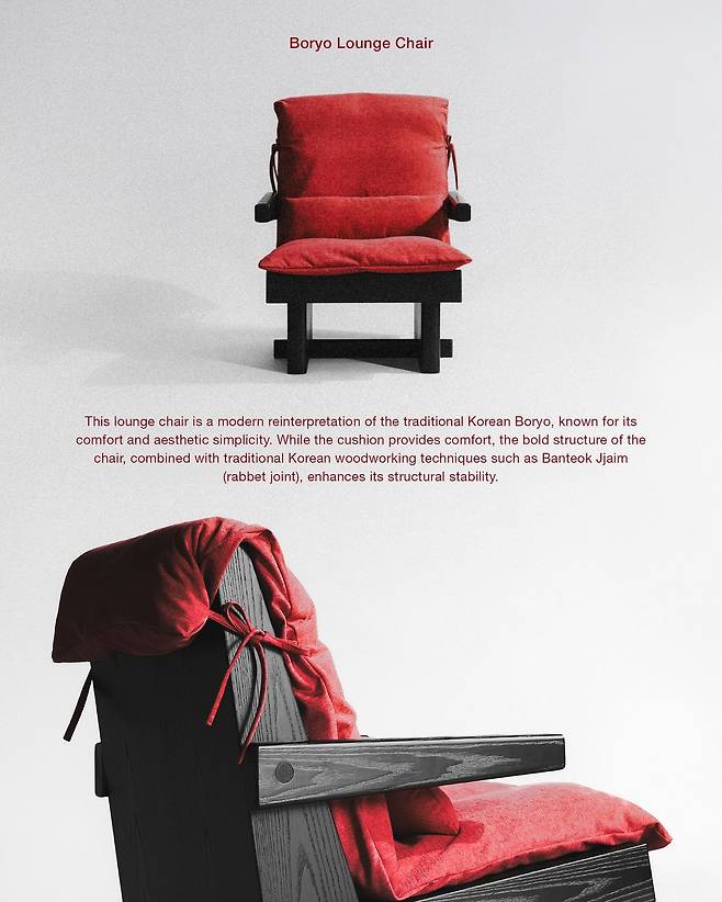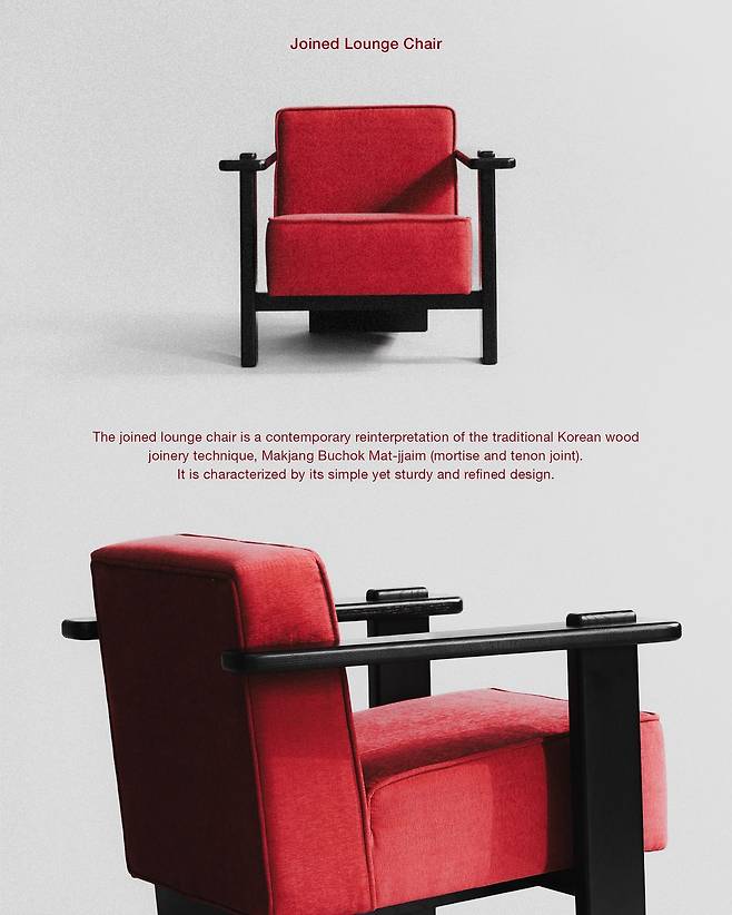 조인드 라운지 체어 는 한국 전통 목공 기법인 막장부촉 맞짜임을 현대적으로 재해석한 가구입니다. 단순하면서도 견고하고 세련된 디자인이 특징으로, 무대 위에서 제니의 절제된 우아함과 조화를 이루죠.