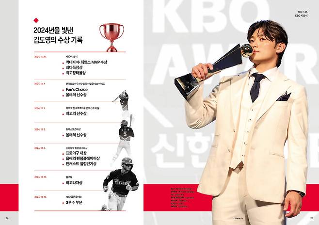 김도영은 지난해 KBO리그 최고 선수였다. 총 141경기에 출전한 그는 타율 0.347 38홈런 143득점 109타점을 기록했다. 출루율(0.420)과 장타율(0.647)을 합한 OPS는 1.067로 리그 1위였다. 역대 최연소·최소 경기 30(홈런)-30(도루) 클럽에 가입했다. 리그 역대 두 번째 40-40 클럽에 도전했지만 아쉽게도 홈런 2개가 부족했다. 그러나 KIA의 통합 우승을 이끌며 리그 최고 스타로 우뚝 섰다. KBO리그 최우수선수, 골든글러브(3루수) 등 연말 시상식에서 상을 휩쓸었다.