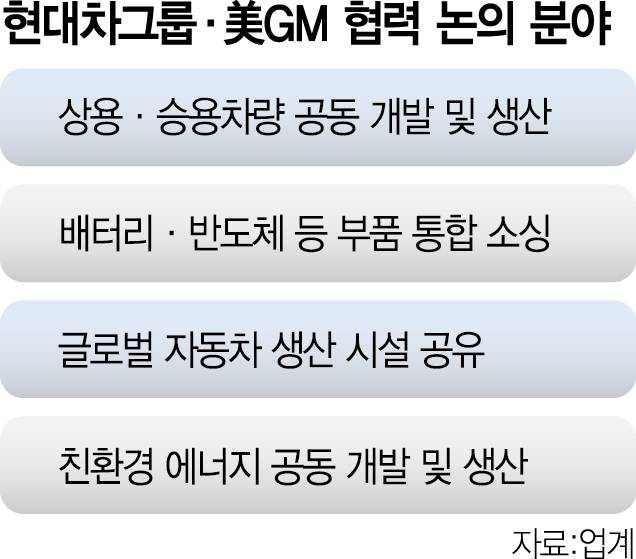 또 두 회사는 제품 공유를 넘어 판매와 서비스 네트워크를 공동 운영하는 방향을 협의 중이다. 현대차와 GM은 이에 대해 “다양한 분야에서 협업을 논의 중이지만 아무것도 확정되지 않았다”며 신중한 입장이다. .