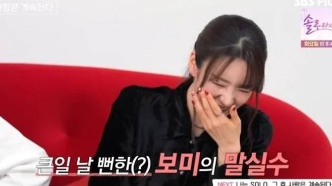 지난 20일 방송된 ENA·SBS Plus '나는 SOLO, 그 후 사랑은 계속된다(이하 '나솔사계')' 105회에서 윤보미는 클로징 멘트를 하던 중 실수로 "나는 솔로 지금"이라고 말해 현장을 웃음바다로 만들었다.
