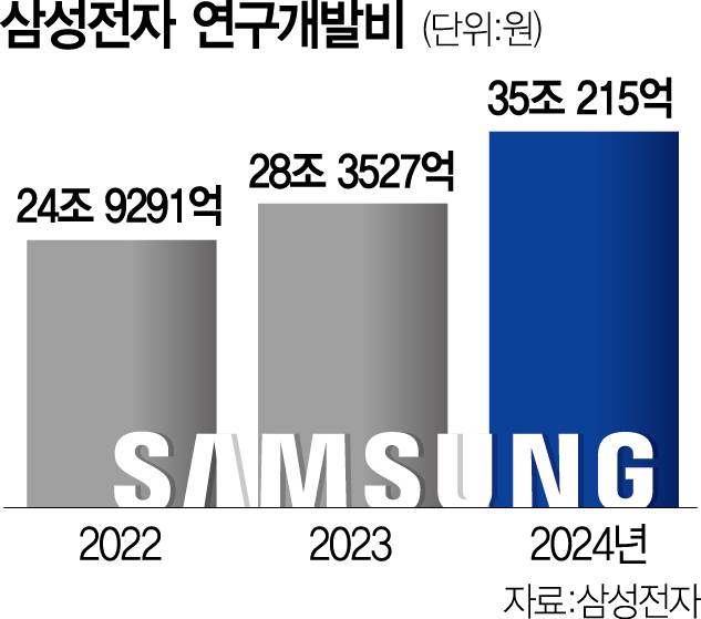 삼성전자가 공격적인 R&D 투자에 나서는 데는 최근 그룹 전반에 깔린 위기감도 영향을 미친 것으로 분석된다. 삼성전자는 인공지능(AI) 시대 핵심 메모리인 고대역폭메모리(HBM) 분야에서 경쟁사인 SK하이닉스(000660)·마이크론 등에 추격당하면서 D램 1위의 자존심을 구겼고, 파운드리 사업부는 3㎚(나노미터·10억분의 1m) 이하 최선단 공정에서 수율 부진 등으로 이렇다 할 성과를 내지 못했다.