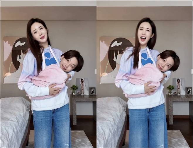 두 사람의 귀여운 숏폼 영상에 팬들은 "2초 깜짝 놀랐다", "두 분 닮은 아기는 정말 예쁠 거 같다", "합성인 줄 알았다" 등의 반응을 보이며 웃었다.