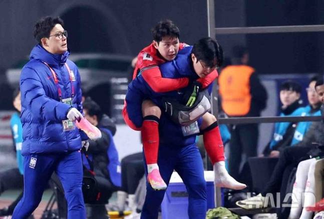 이날 한국은 전반 38분 백승호가 왼쪽 햄스트링 통증을 호소한 데 이어 후반 40분 좋지 않은 잔디 상태에 이강인의 왼쪽 발목이 꺾이며 예기치 못한 전력 누수를 겪었다. 특히 이강인의 경우 경기 후 목발을 짚은 채 부축받는 모습이 포착돼 안타까움을 자아냈다.