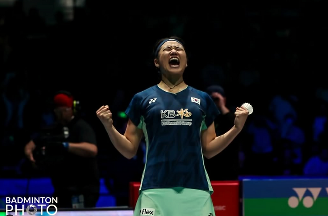 <사진> 특유의 파이팅 넘치는 세리머니를 펼치는 안세영. 안세영 인스타그램