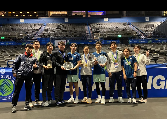 <사진> 전영오픈에서 금메달 2개를 합작한 안세영과 서승재-김원호를 비롯한 한국 선수단. ‘윙크 보이’ 이용대의 얼굴도 보인다. 안세영 인스타그램