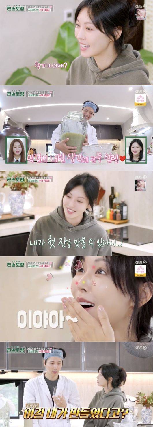 6일간의 발효 끝, 막걸리를 첫 시음한 이상우와 김소연. 두 사람은 발음이 꼬이거나 말 실수를 하는 등 살짝 취한 모습으로 웃음을 자아냈다. 김소연은 “취했나요”라며 애교를 선보여 모두의 부러움을 자아내기도. 이후 이상우는 잘 만들어진 막걸리를 병에 옮겨 담아 그럴싸한 모양으로 만들어냈다.