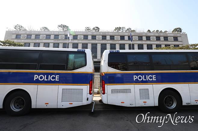 | ▲ 윤석열 대통령 탄핵심판 선고를 앞두고 11일 오후 서울 종로구 헌법재판소 본관앞에 경찰버스가 배치되어 있다. |