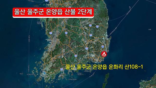 산림청은 오늘(22일) 낮 12시 12분에 울산 울주군 온양읍 운화리 산108-1번지 일대에서 발생한 산불이 계속 번지고 있다며, 오후 5시 10분을 기해 산불 2단계를 발령했습니다.